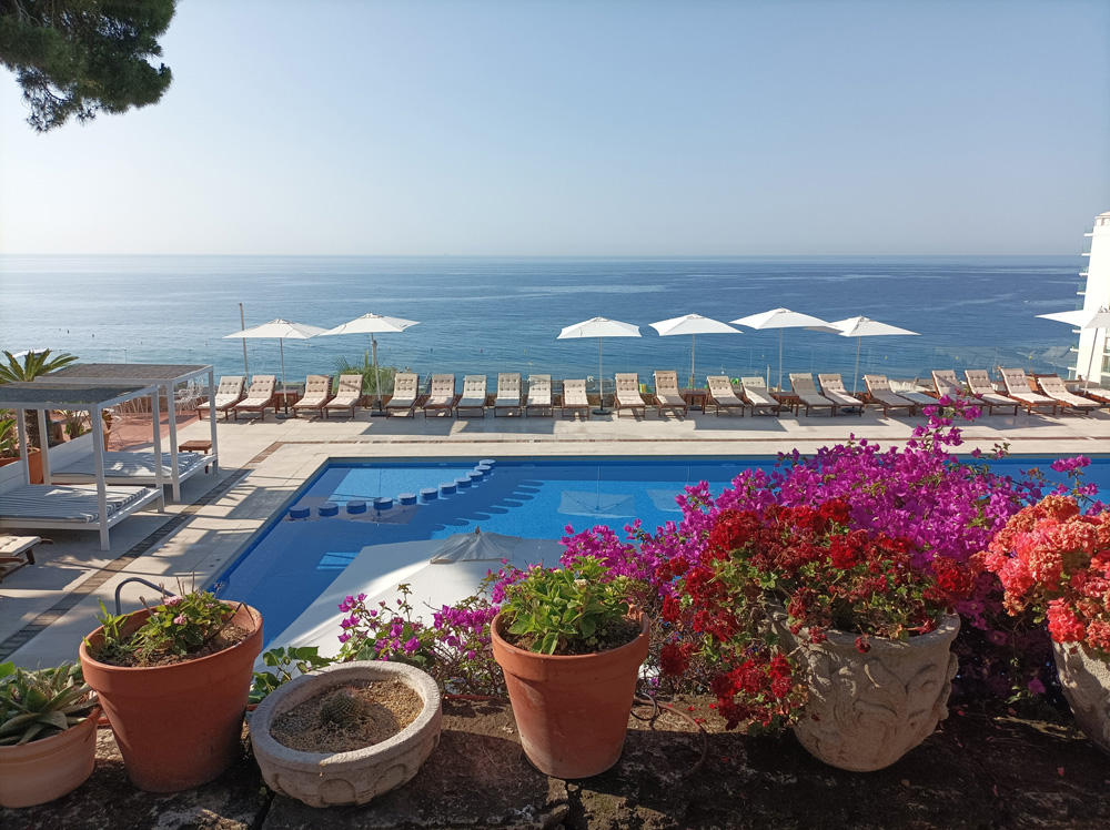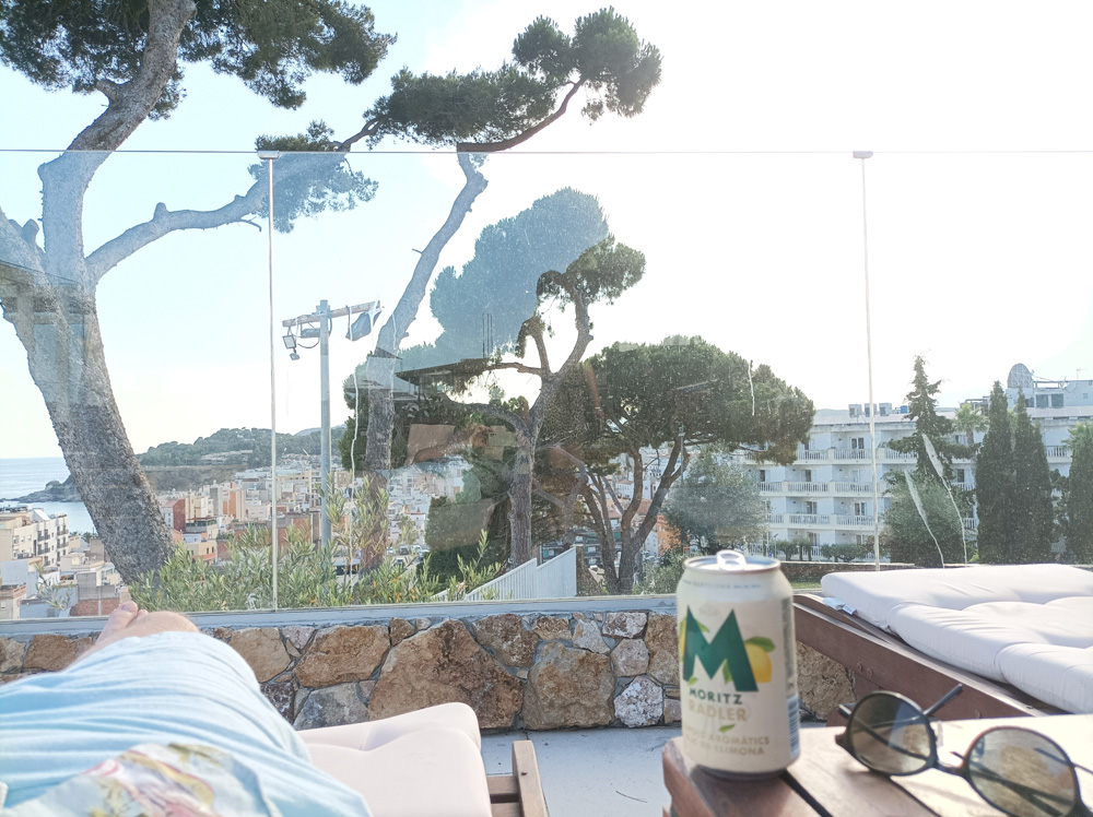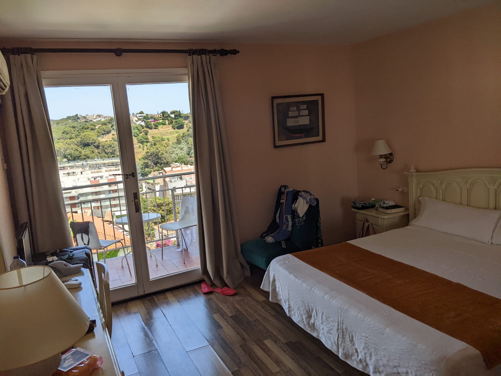 We checked in and entered our marvelous room with a view of a Spanish hillside and the Balearic Sea.